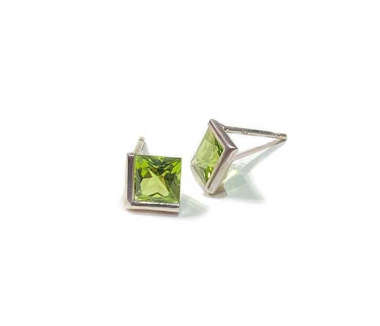 Our favorite design the Geometrie studs are now available in those beautiful Peridot princess cut gem stones.
